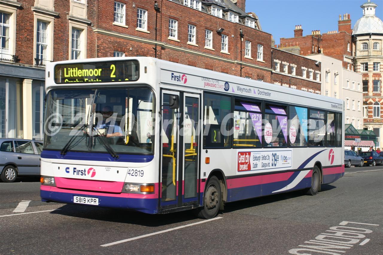 This is a Dennis Dart SLF/Plaxton Pointer 2. It is fleet number 42819. The picture was taken in Weymouth on 27/10/2005.
