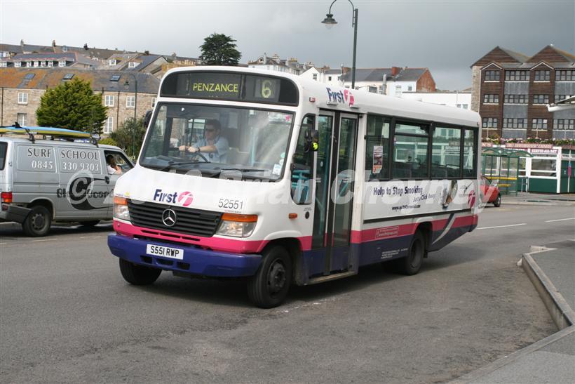 This is a Mercedes Benz Vario O.814/Plaxton Beaver 2. It is fleet number 52551. The picture was taken in Penzance on 04/07/2009. This vehicle was previously operated by Midland Red West.
