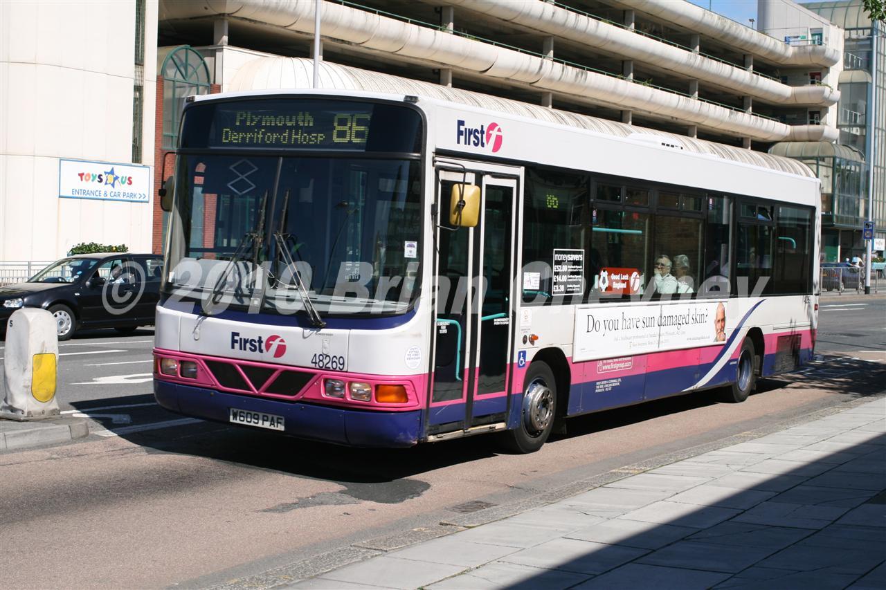 This is a Volvo B6BLE/Wright Crusader. It is fleet number 48269. The picture was taken in Plymouth on 12/06/2010.