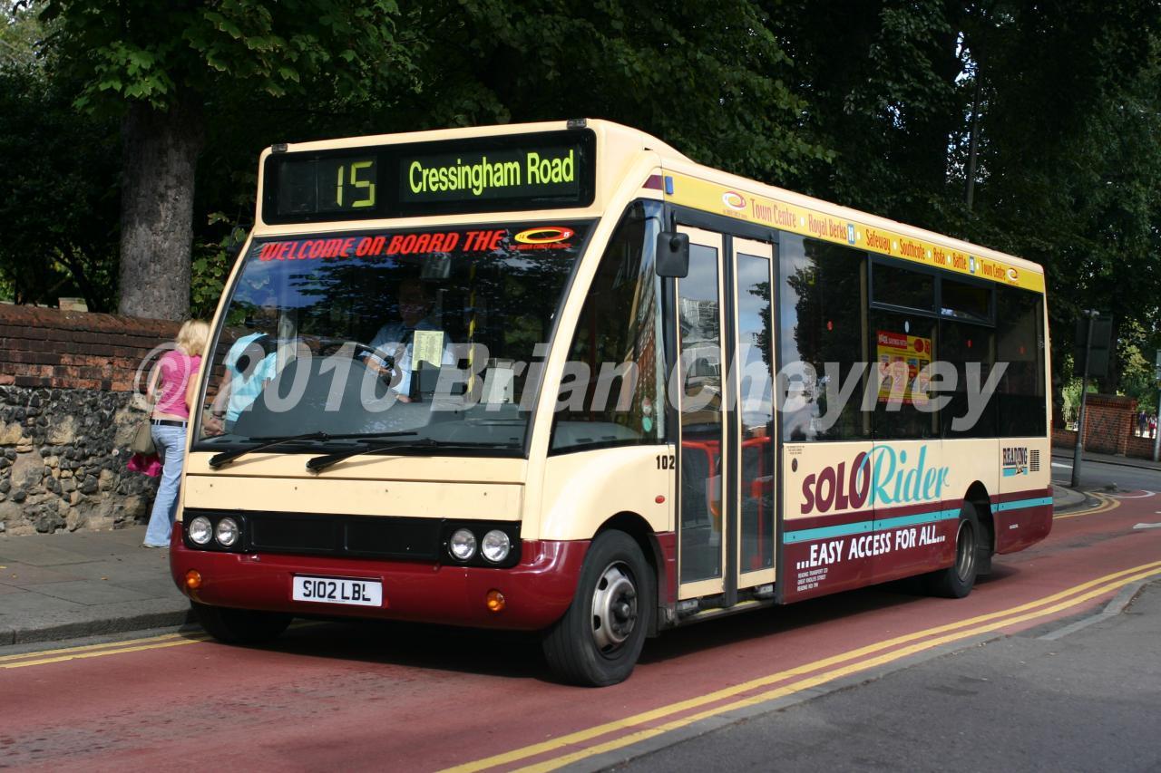 This is a Optare M850/Optare Solo. It is fleet number 102. The picture was taken in Reading on 24/09/2005.