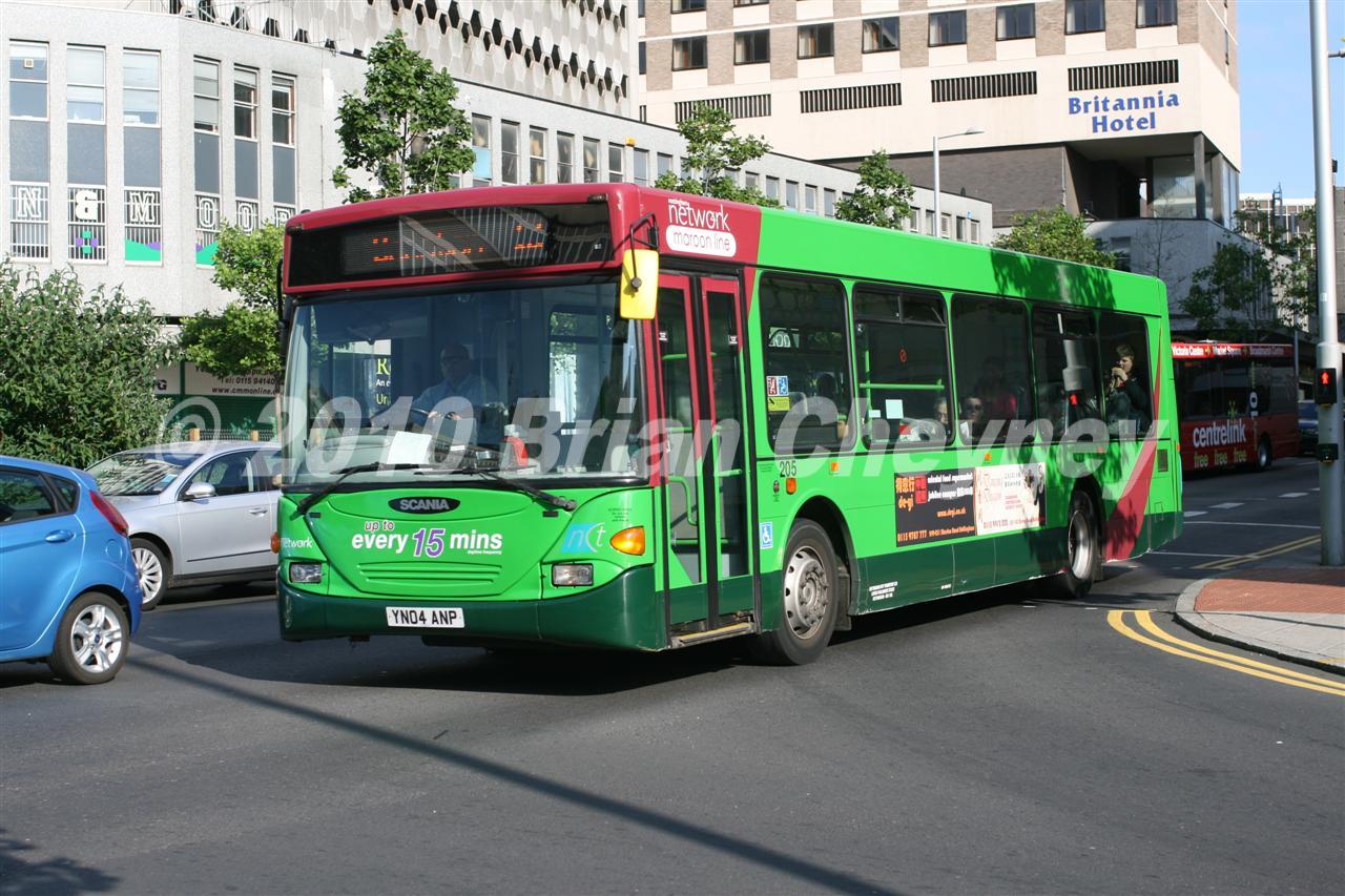 This is a Scania N94UB/East Lancs OmniTown. It is fleet number 205. The picture was taken in Nottingham on 25/06/2010.