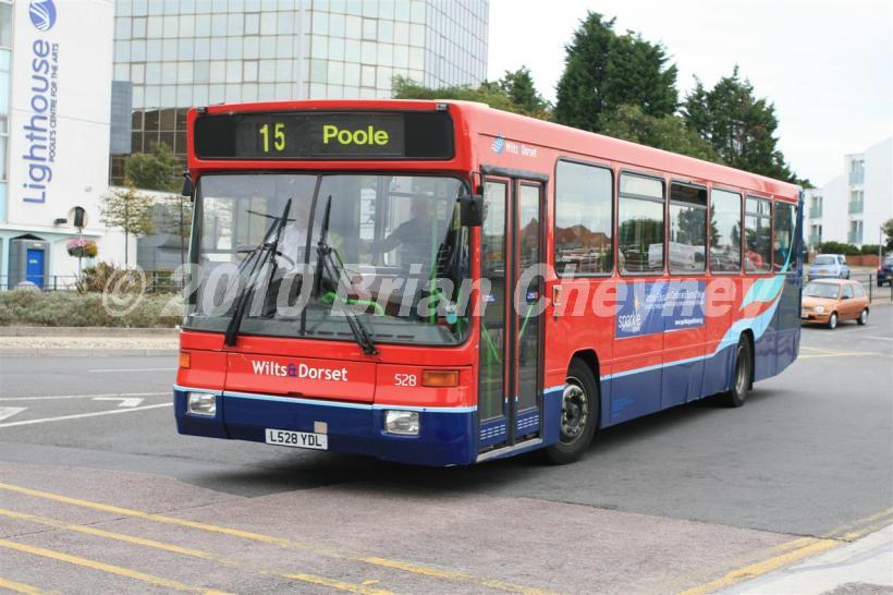 This is a Volvo B10B/Alexander Strider. It is fleet number 528. The picture was taken in Poole on 09/09/2009. This vehicle was previously operated by Solent Blue Line.