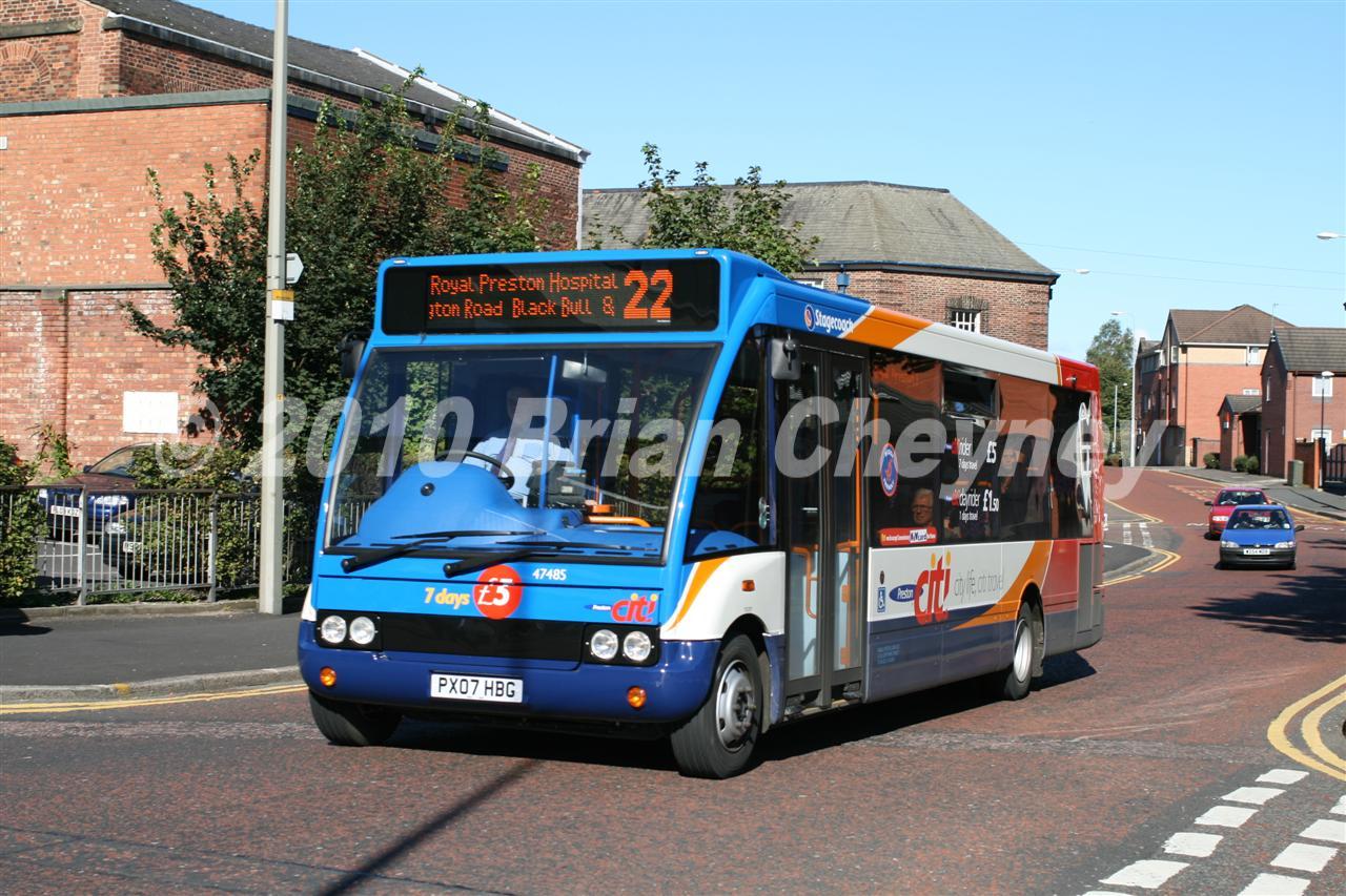 This is a Optare M880/Optare Solo. It is fleet number 47485. The picture was taken in Preston on 07/09/2007.