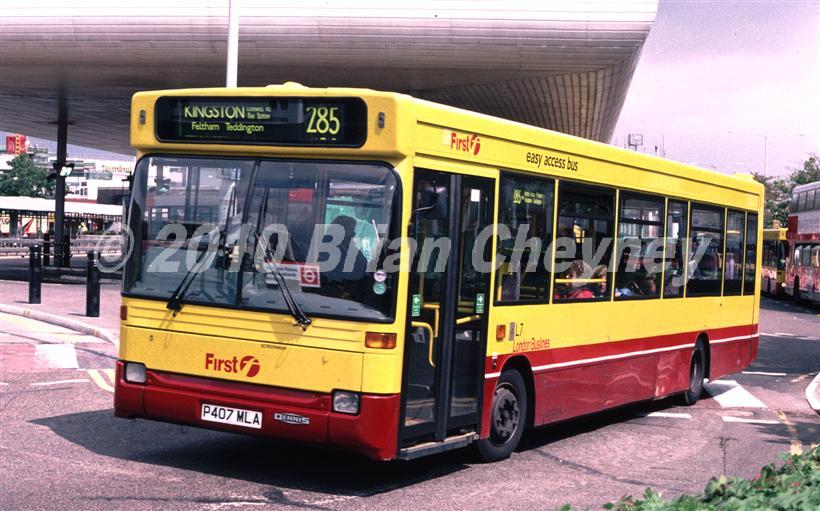This is a Dennis Dart SLF/Plaxton Pointer. It is fleet number 42407. The picture was taken in Heathrow on 15/06/1998. London Buslines This vehicle was previously operated by Centrewest as L7.