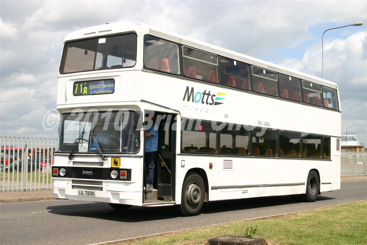 This is a Leyland Olympian/ECW coach. It is fleet number 4500. The picture was taken in North Weald on 27/06/2004. This vehicle is now operated by Motts.